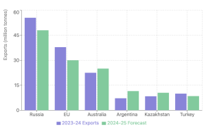 - Russia: Expected to export 48 million tonnes, down 7.5 million tonnes from the previous season.